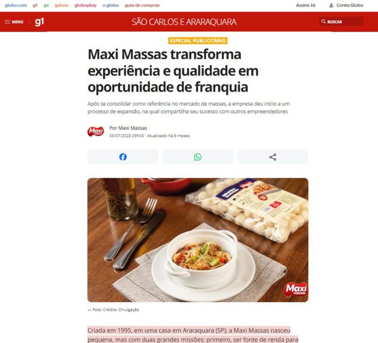 Que o brasileiro é apaixonado por massa, os números comprovam. Destaque-se entre os negócios da sua região, com uma franquia Maxi Massas.